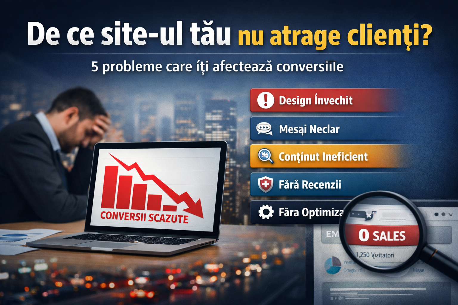 Dacă te întrebi de ce site-ul tău nu atrage clienți, răspunsul nu este unul singur. De cele mai multe ori, este vorba despre o combinație de factori: design, mesaj, conținut și optimizare pentru conversie.