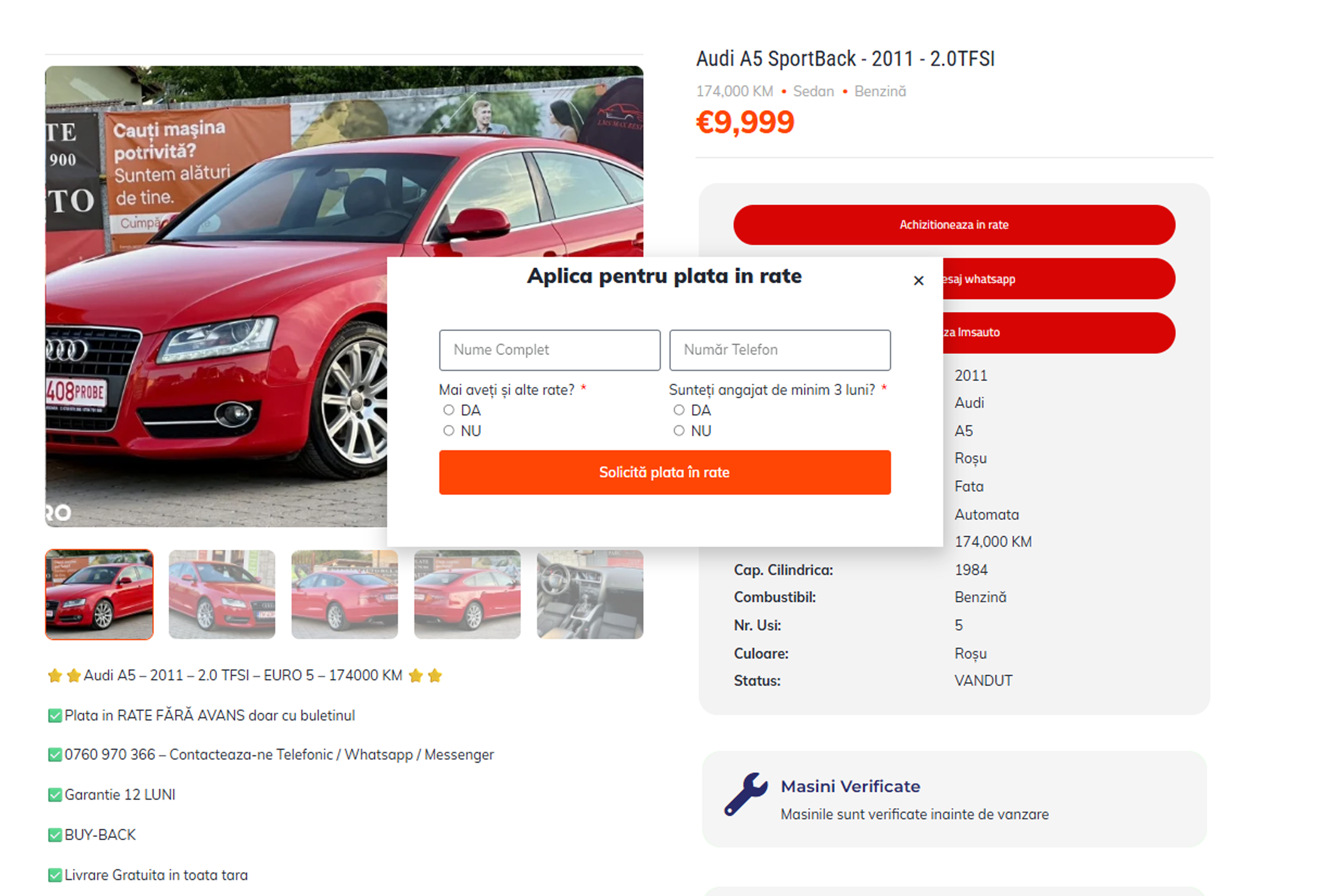 Targetare avansată pentru atragerea clienților interesați de finanțare și achiziții cash.