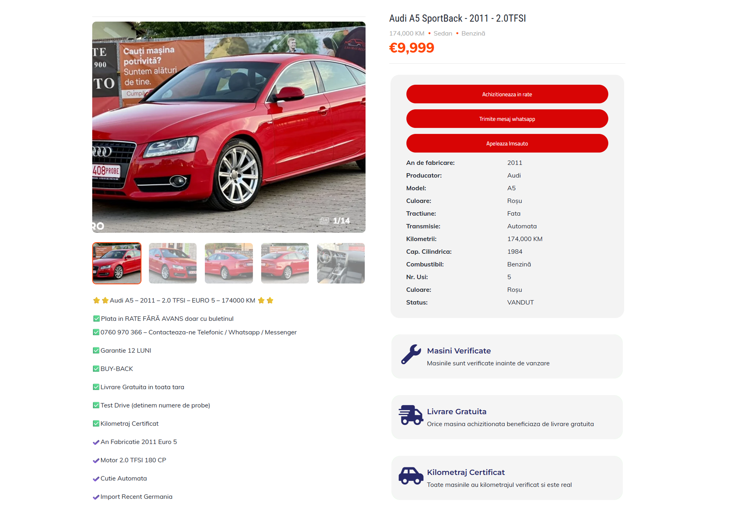 Crearea unei platforme web moderne pentru prezentarea parcului auto și generarea de leaduri.